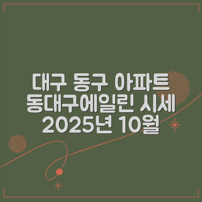 대구시 동구 신암동 동대구에일린의뜰 아파트의 투자 가치를 분석하는 것은 매우 중요한 사항입니다. 이 가이드에서는 2025년 10월 시세를 이해하고, 적절한 투자 결정을 할 수 있는 정보를 제공합니다.
