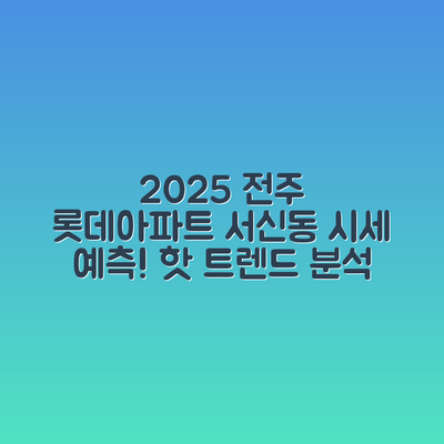 2025년 12월이 되면 전라북도 전주시 완산구 서신동 롯데 아파트의 시세가 어떻게 변할지에 대한 고민이 커질 것입니다. 이는 많은 투자자와 예비 구매자들에게 큰 관심사인데, 적절한 정보 없이는 현명한 결정을 내리기 어려울 수 있습니다.